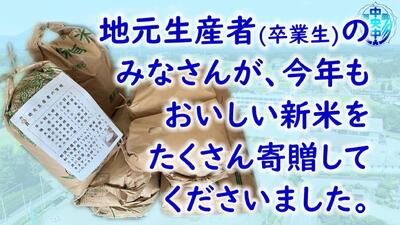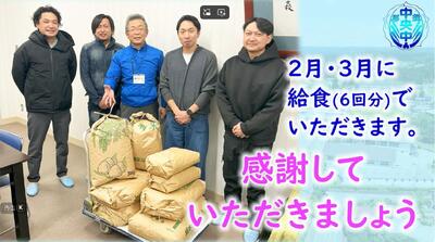 本日2/18(水)の給食は、地域の有志の方より無償提供いただいたお米をいただきました。