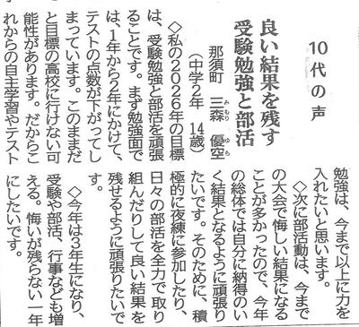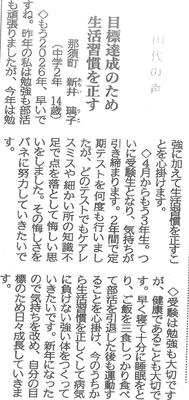 新年、1月3日(土)の下野新聞「読者登壇 10代の声」に本校生徒が寄稿しました。