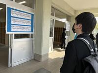 朝の生徒昇降口では、わくわくドキドキのクラス発表が張りされていました。