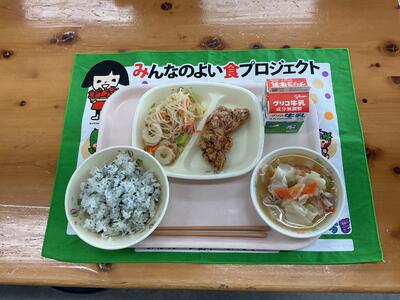 今日の給食(2月27日金曜日) 投稿: 管理者 (02/27) 【地元生産者の方より無償提供いただいた新米を使用します】 ※3の2リクエスト献立です わかめご飯(那須町産無償提供新米使用) 牛乳 鶏のからあげ 春雨サラダ ワンタンスープ Tweet -