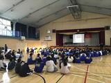 残念ながら、黒田原小学校はインフルエンザの流行により中止となり、中学生のみ体育館で行いました。