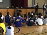 東陽小学校と学びの森小学校は、計画通り給食後にスクールバスで中学生が小学校へ向かいました。