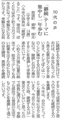 本日1/22(木)の下野新聞「読者登壇 10代の声」に本校生徒が寄稿しました。
